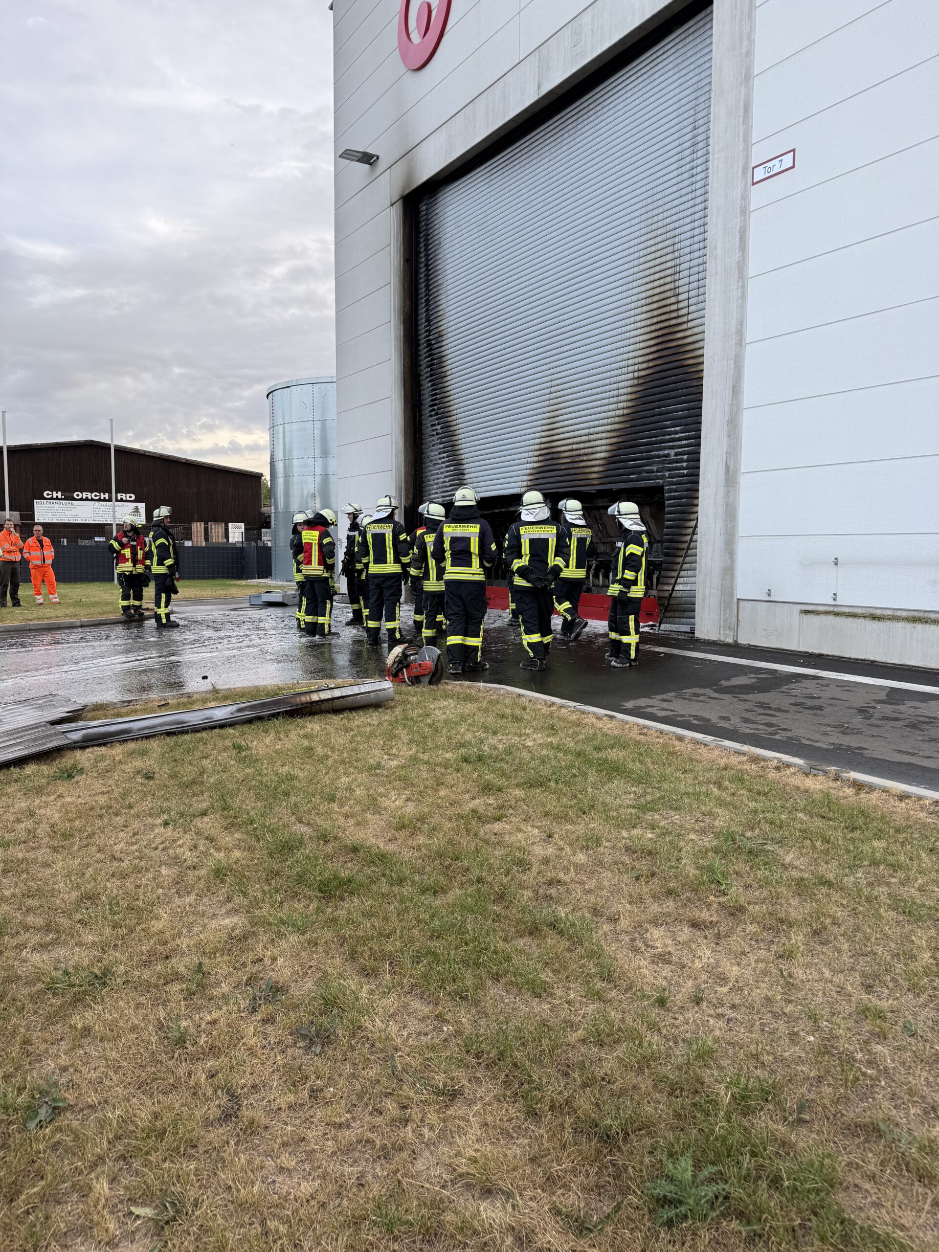Unser Bereitstellungs-Rettungswagen wurde zur Einsatzkräfteabsicherung bei einem Brand auf einem Firmengelände alarmiert. Betroffen war ein Spänebunker.