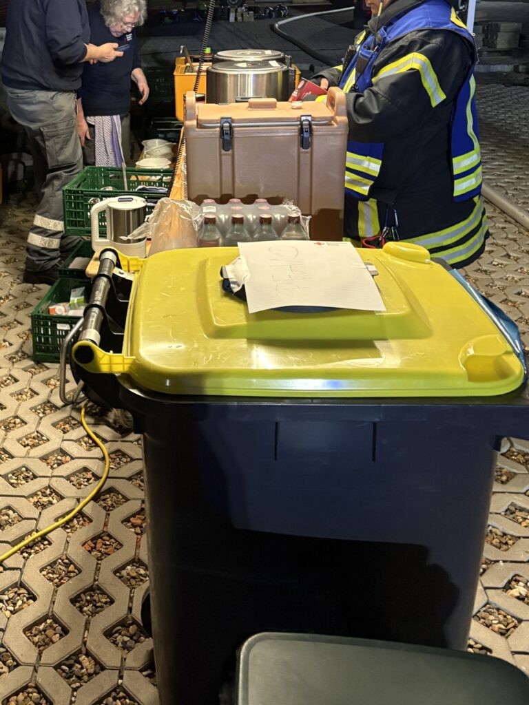 Zur Unterstützung stellte das Technische Hilfswerk kurzfristig Erbsensuppe aus einer vorangegangenen Veranstaltung zur Verfügung. Diese wurde durch die Einsatzkräfte der Bereitschaft weiter aufbereitet, erwärmt und ausgegeben.